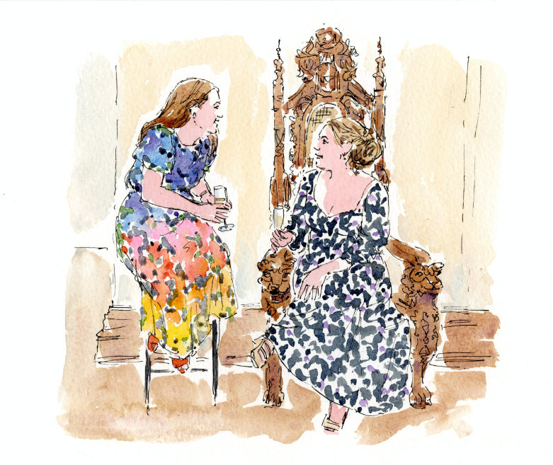 For the Story Of Your Wedding I don’t need much space, I have everything I need on me (literally) and I move around, although it’s important for me to be able to sit down every now and then, which helps me to maintain my energy and concentration. If you would like a sketch display for your guests at the venue, I will need a suitable sheltered or indoor space where I can place my display trellis or a frame. The sketches can be displayed in a different way as well, depending on what’s the best for the venue and the style of your wedding. We can talk about the details later and decide on the best solution.