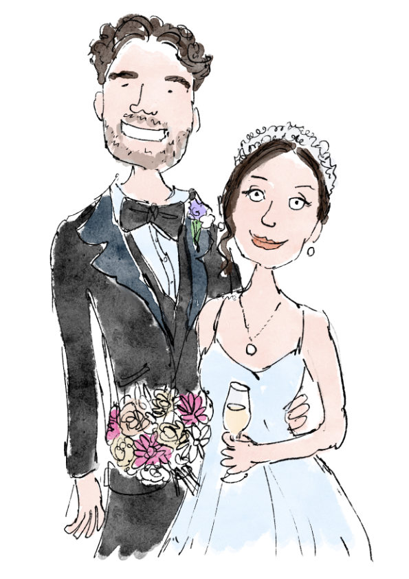 This has a couple of big advantages over real paper. I can send the drawing to your guests’ mobiles right after I finish them. Prints can be also ordered afterwards so they can be given to more people and not just the one person that gets to keep it. Having the portrait on their phone also means it won’t get damaged or left behind accidentally. All the drawings you see in this post were done digitally, I make sure it looks really close to real watercolour.